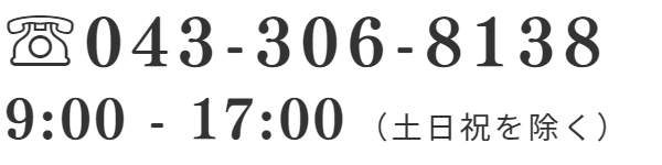 事前にお電話「043-306-8138」(平日9:00~17:00)またはお問い合わせフォームよりご予約ください。